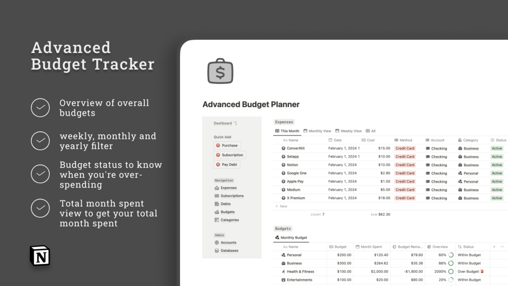 In the complex landscape of personal finance, simplicity and organization are key. That's why we've created the Advance Budget Planner, a tool designed to help you navigate your financial journey effortlessly. Life's expenses, debts, and subscriptions can often feel overwhelming, but with our Budget Planner, you can approach your finances with clarity and confidence.